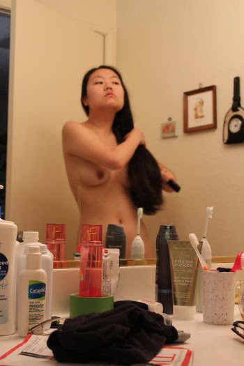 Justine Lim combing her hair and being sexy