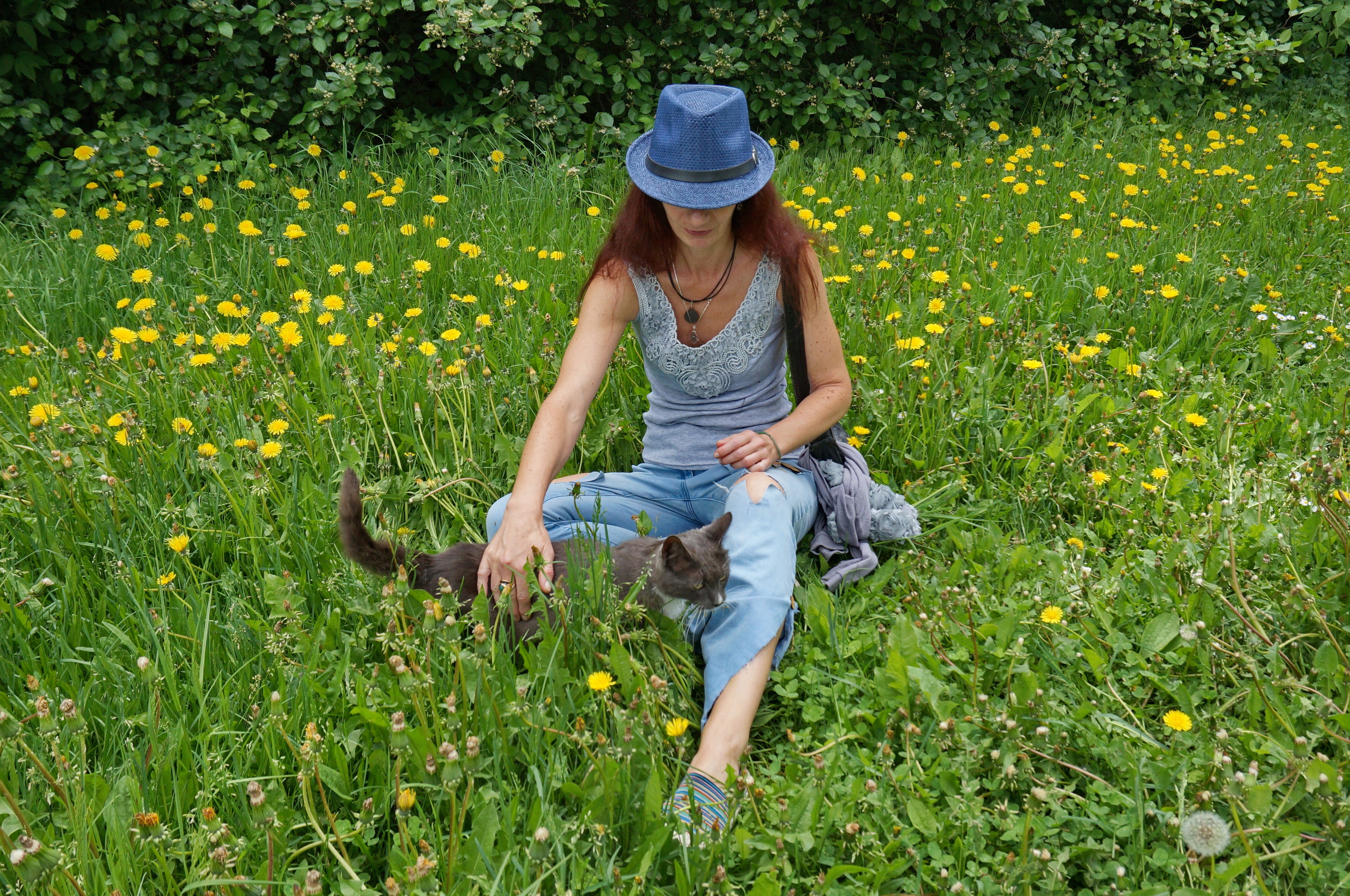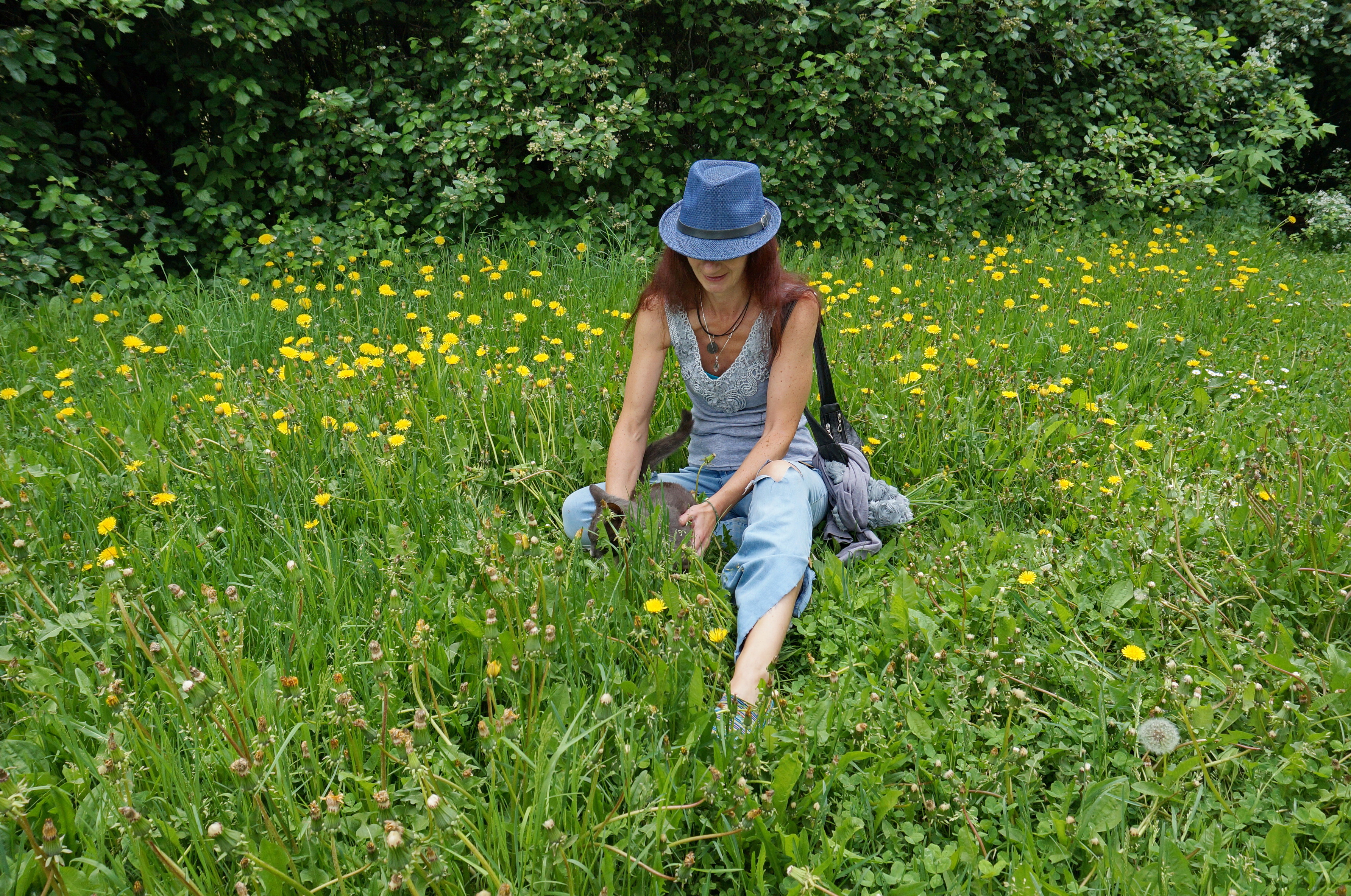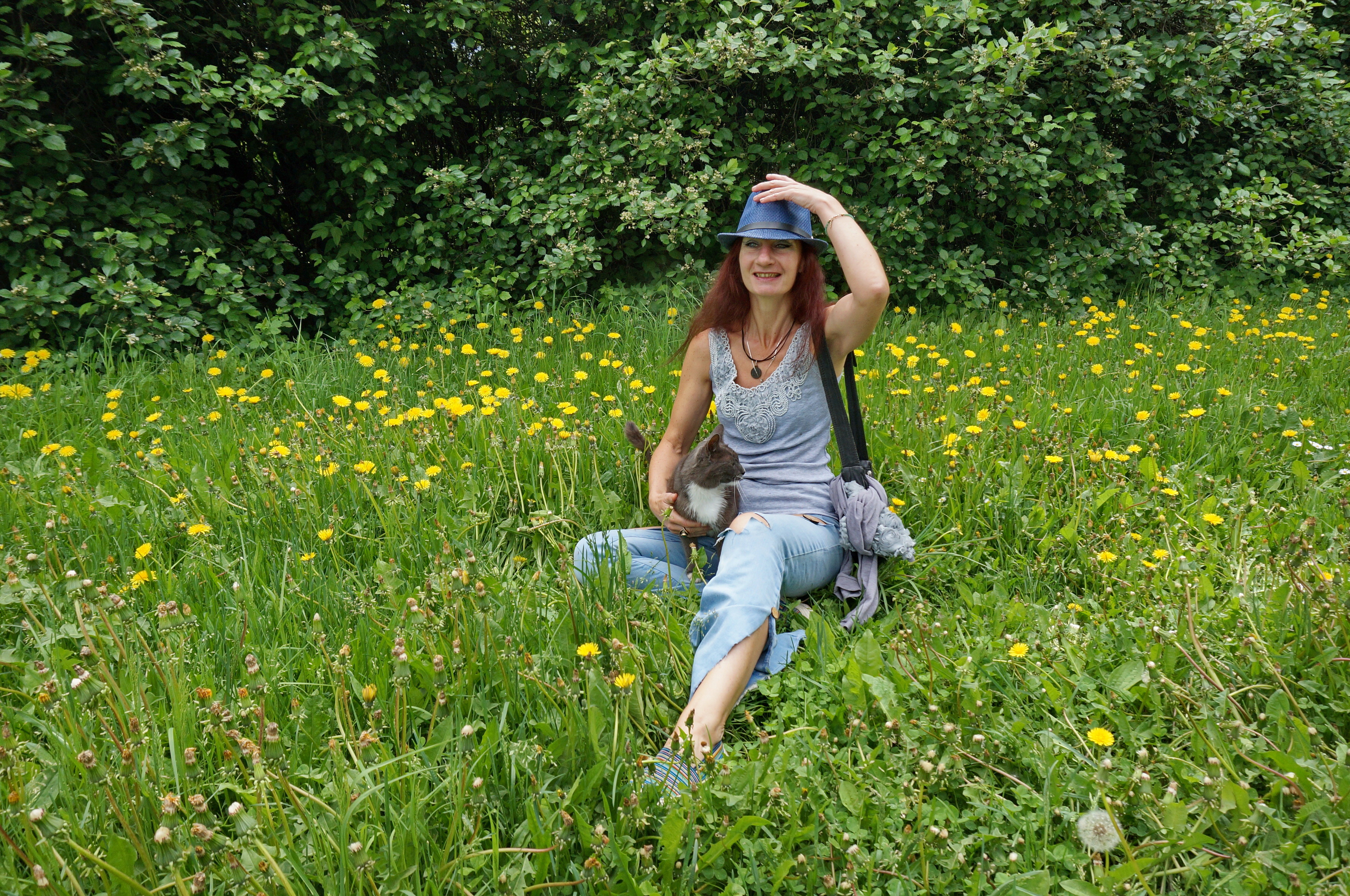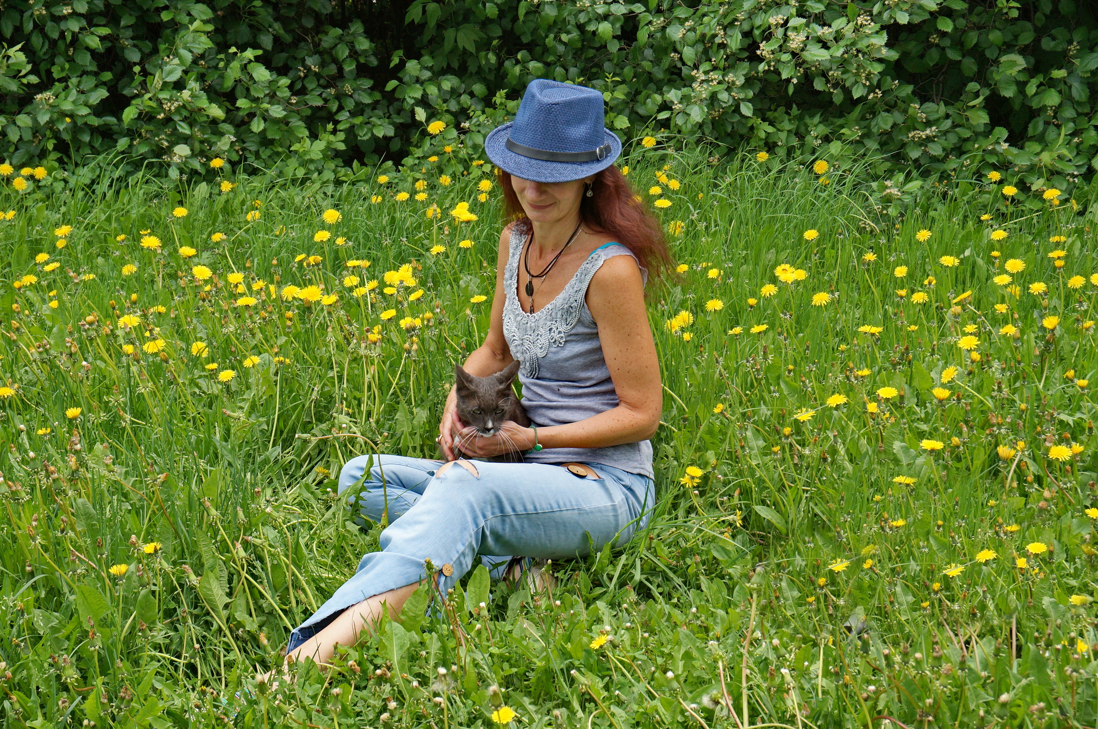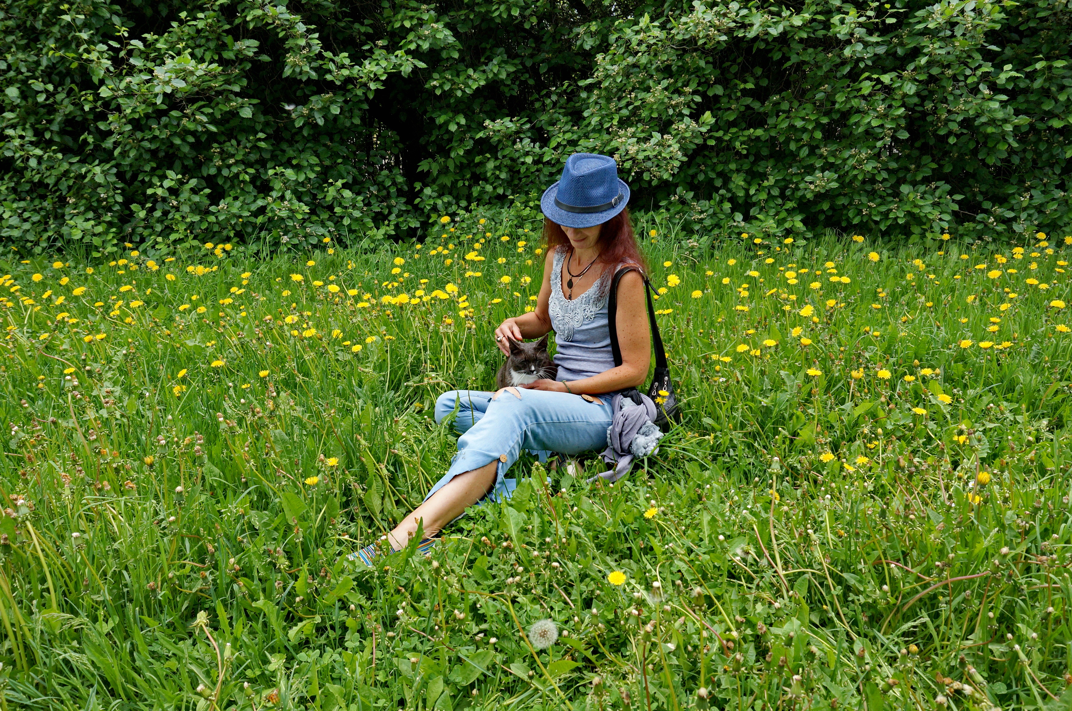 Yellow Flowers and Cat