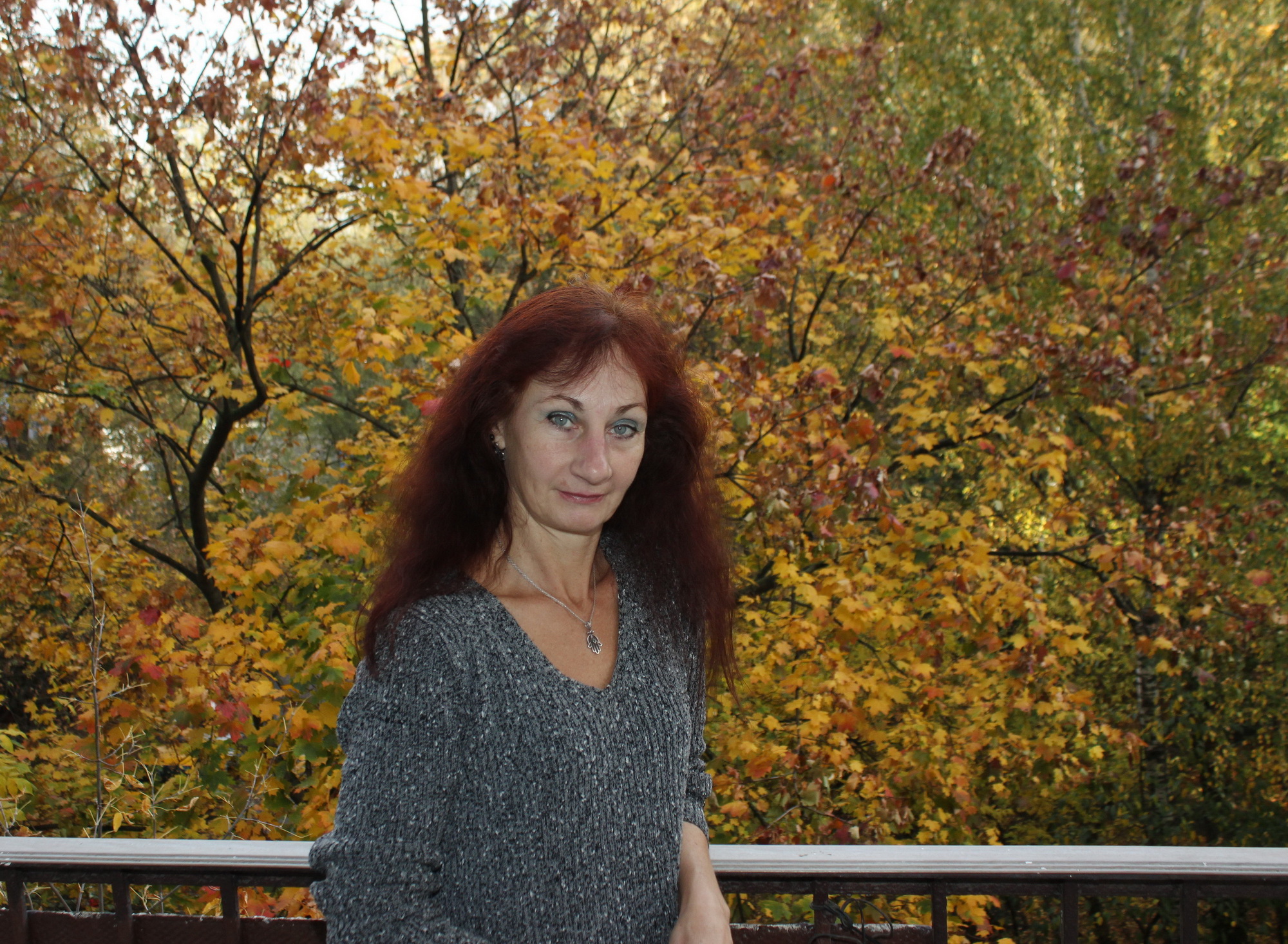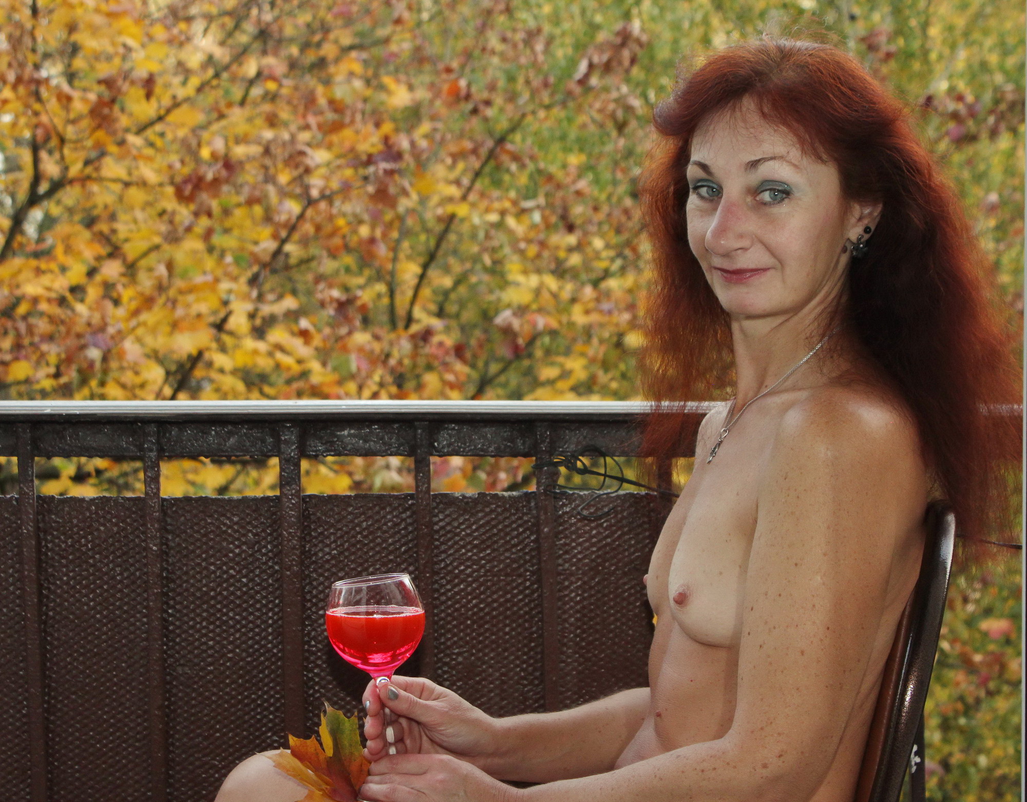 On balсony in yellow leav