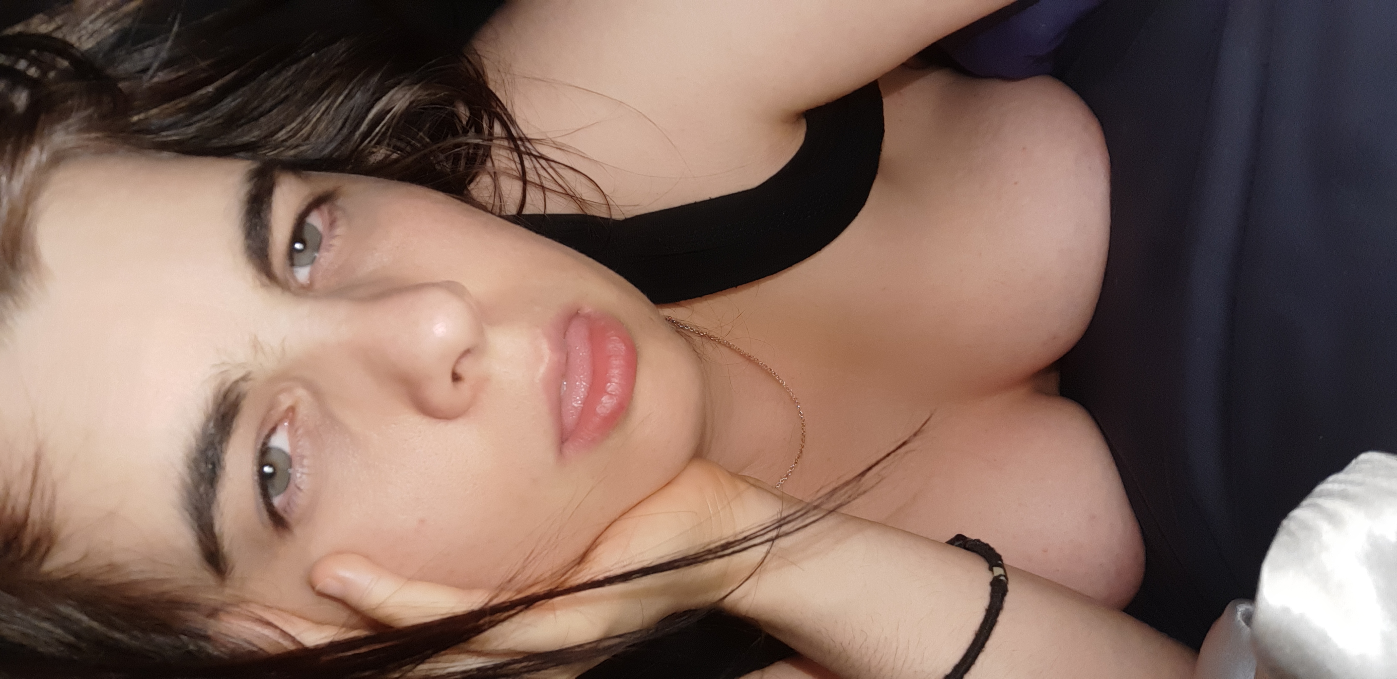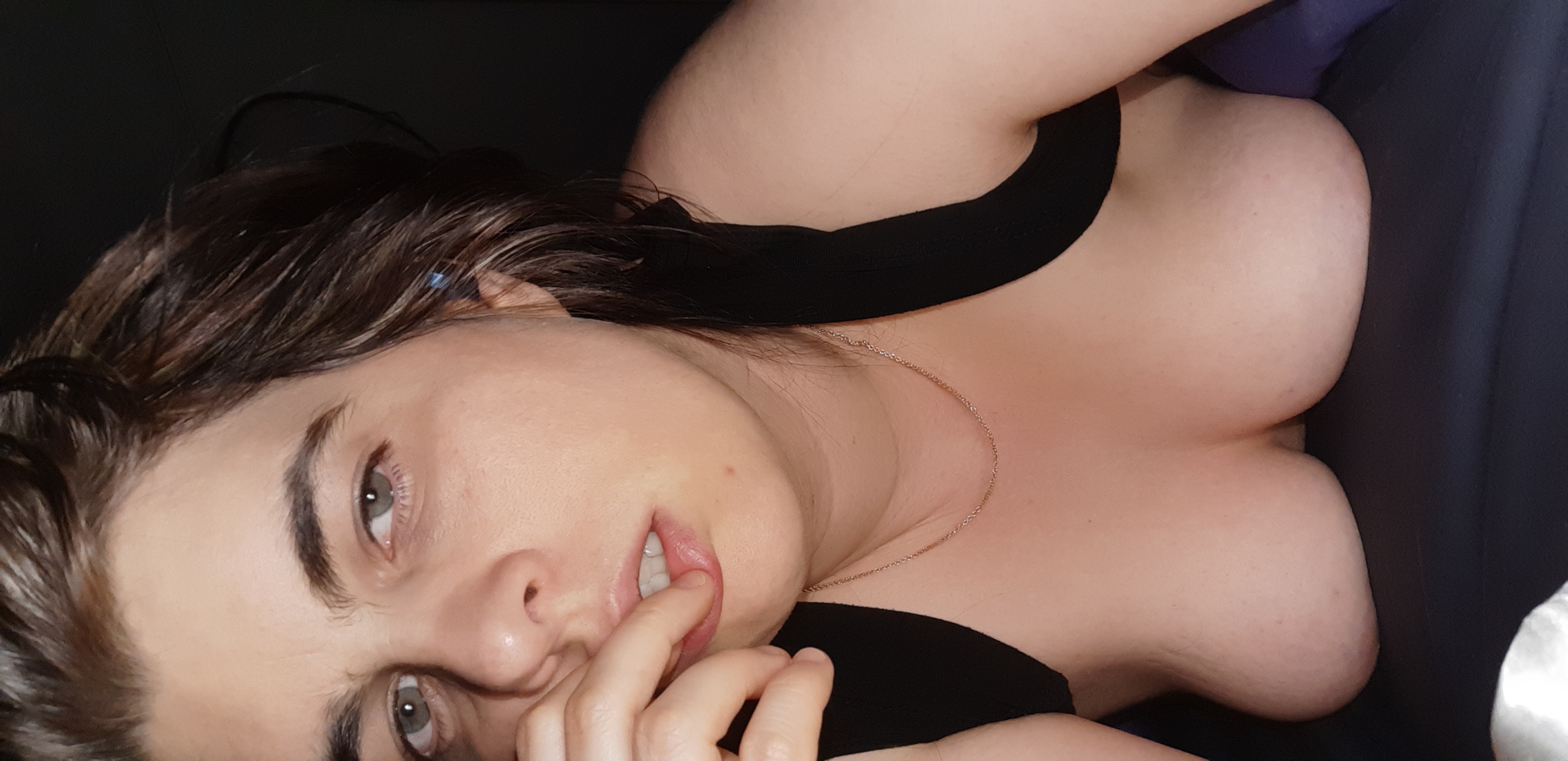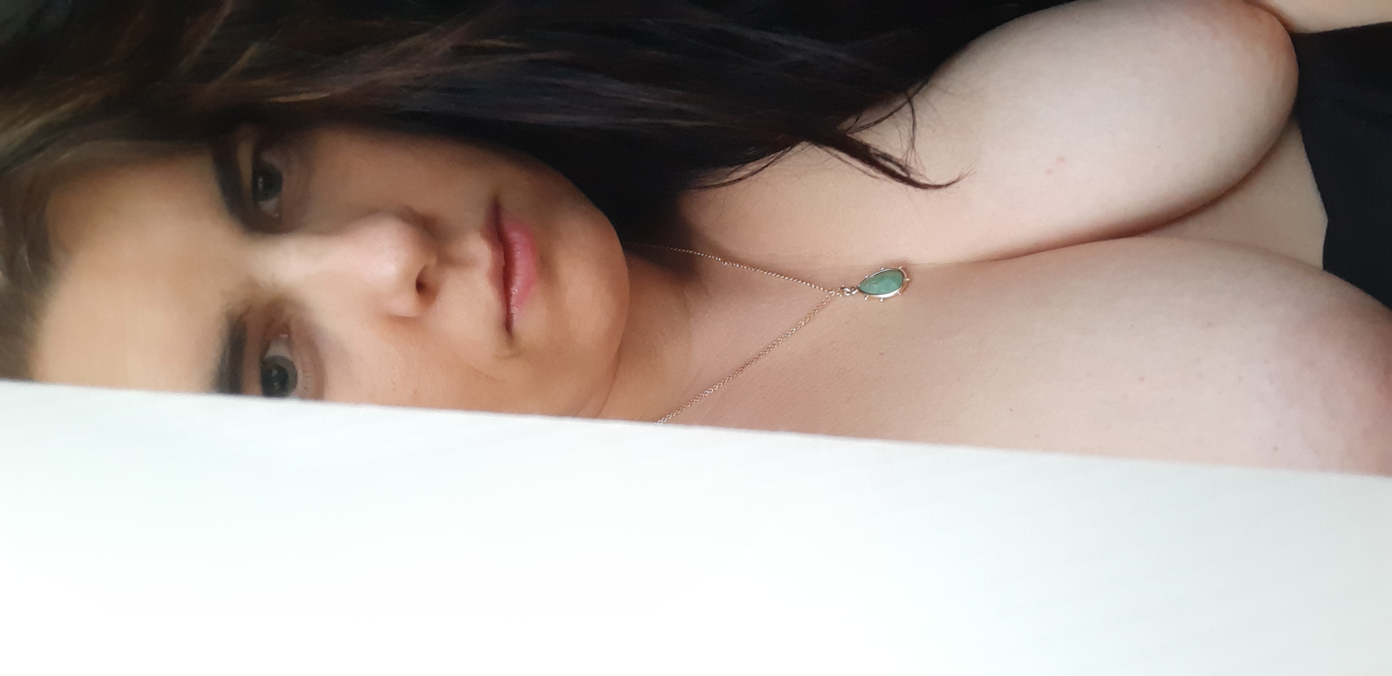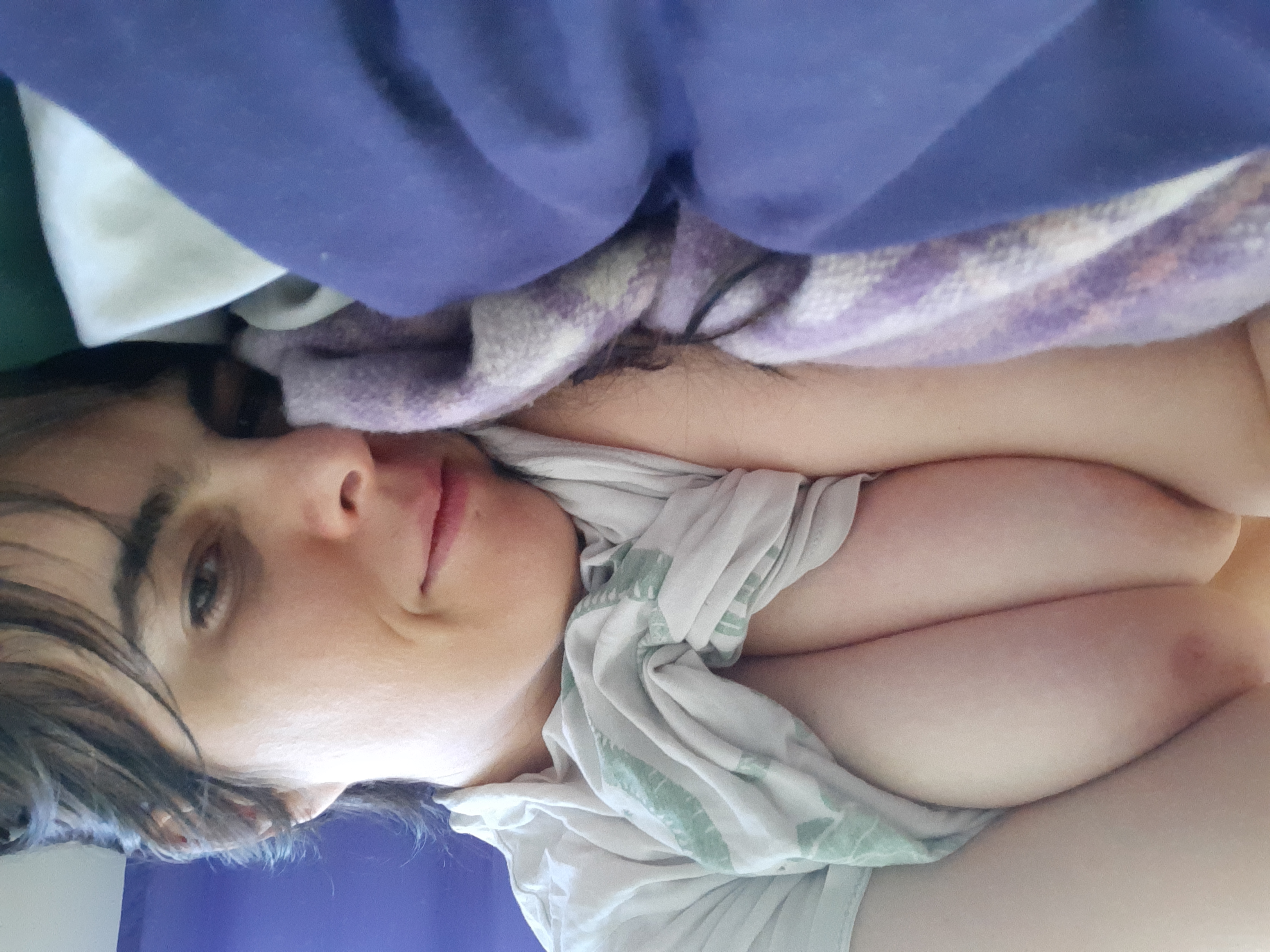 Amateur Milf lazing about in bed revealing her boobs.