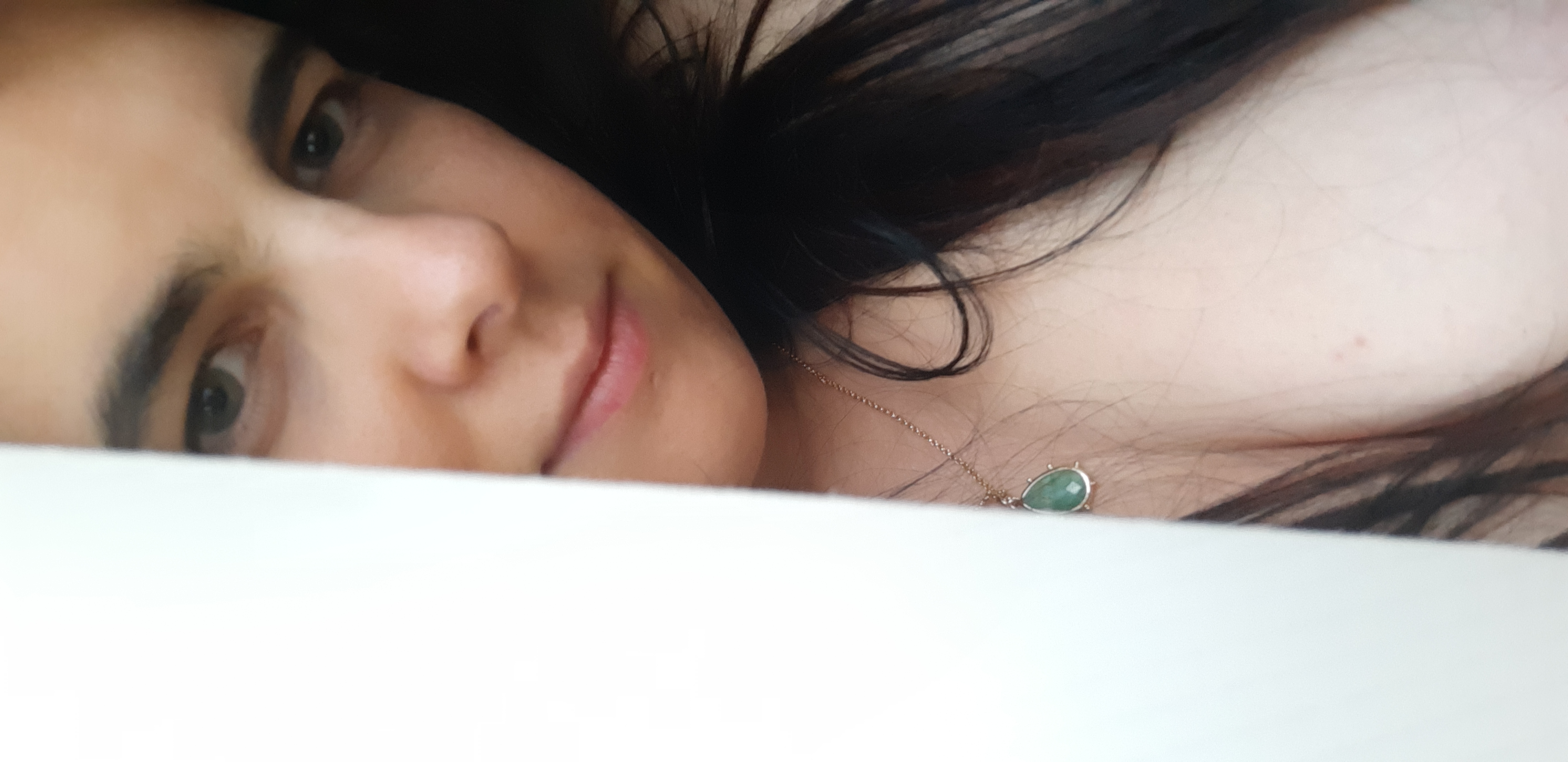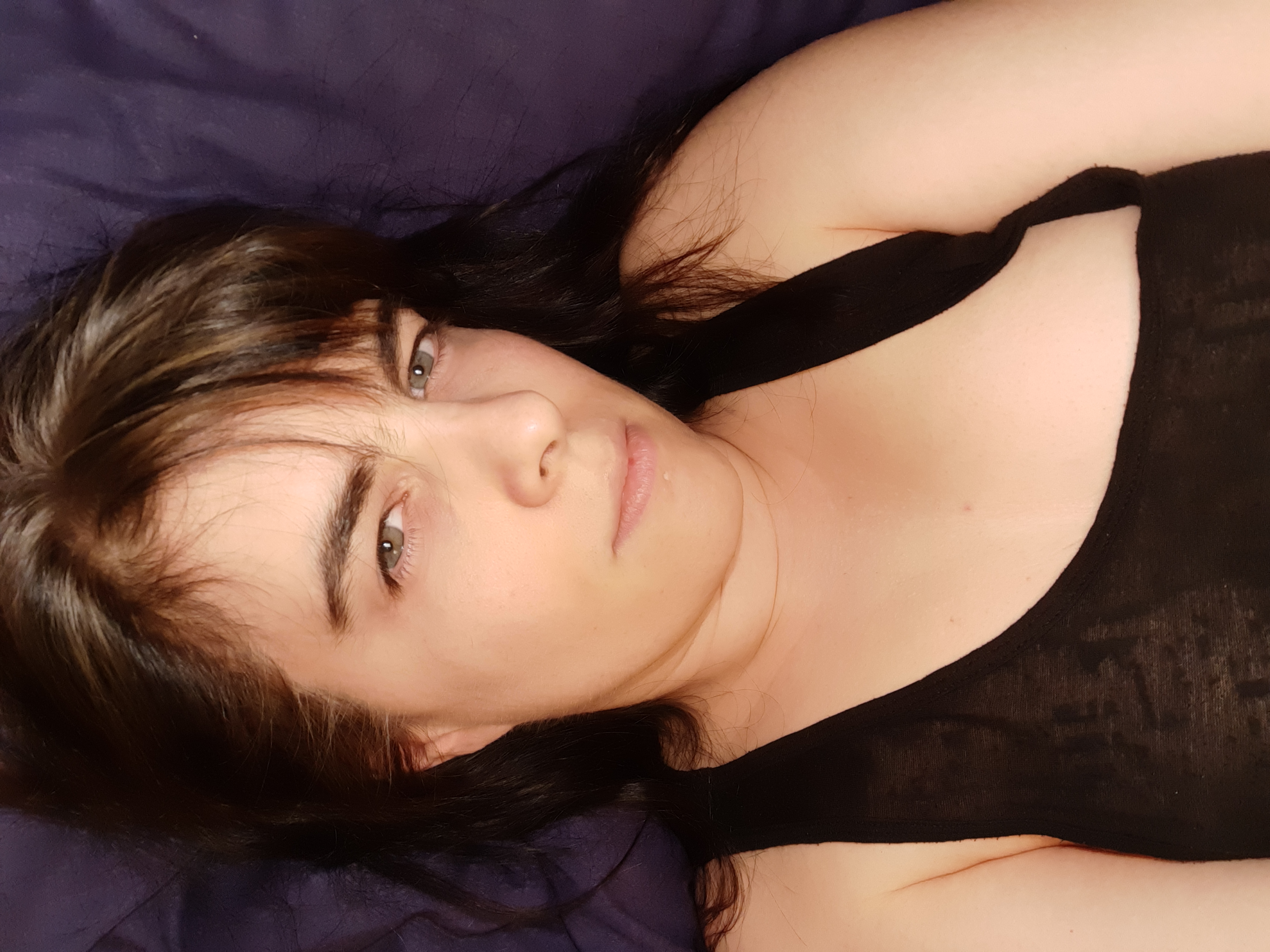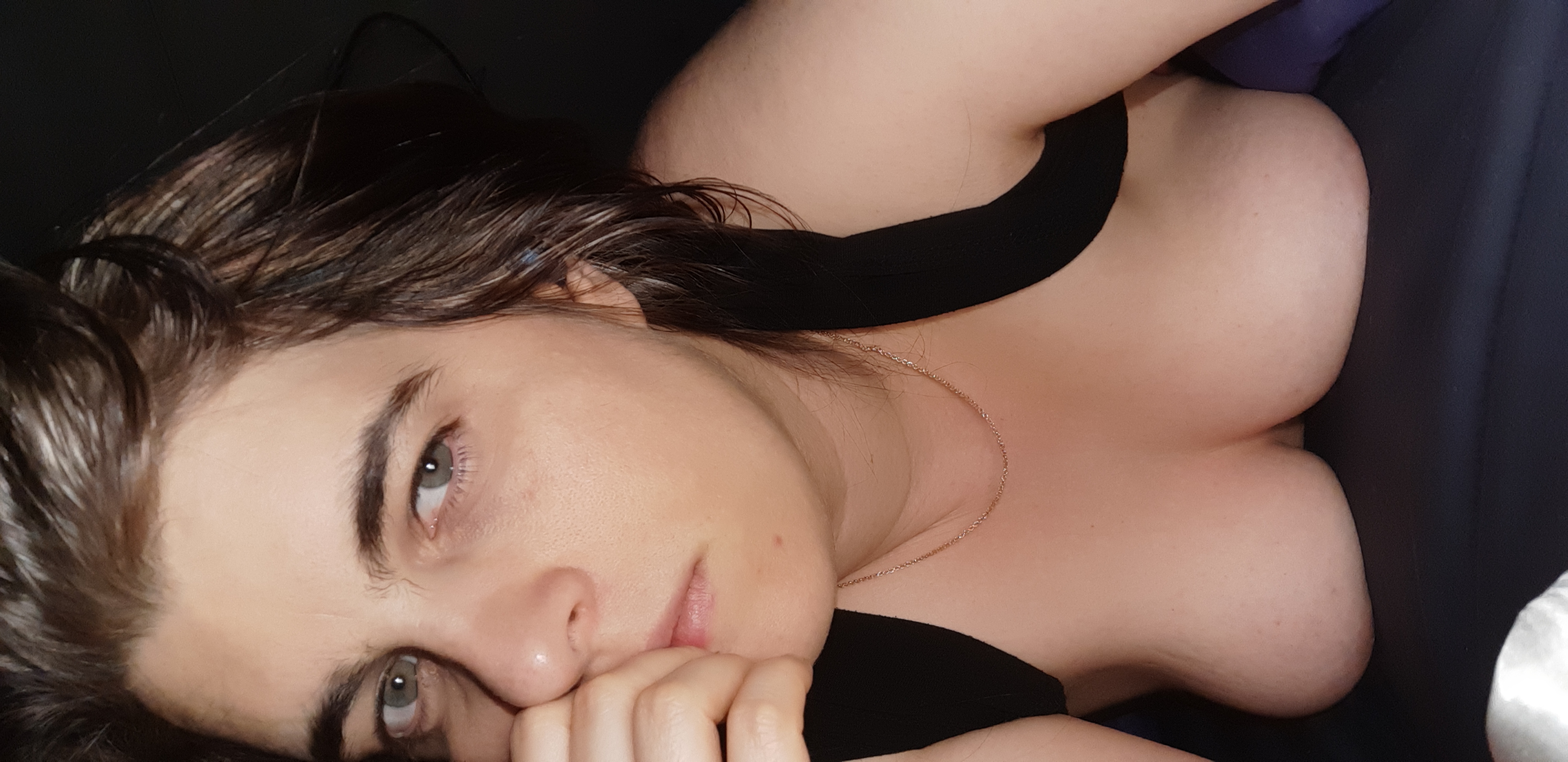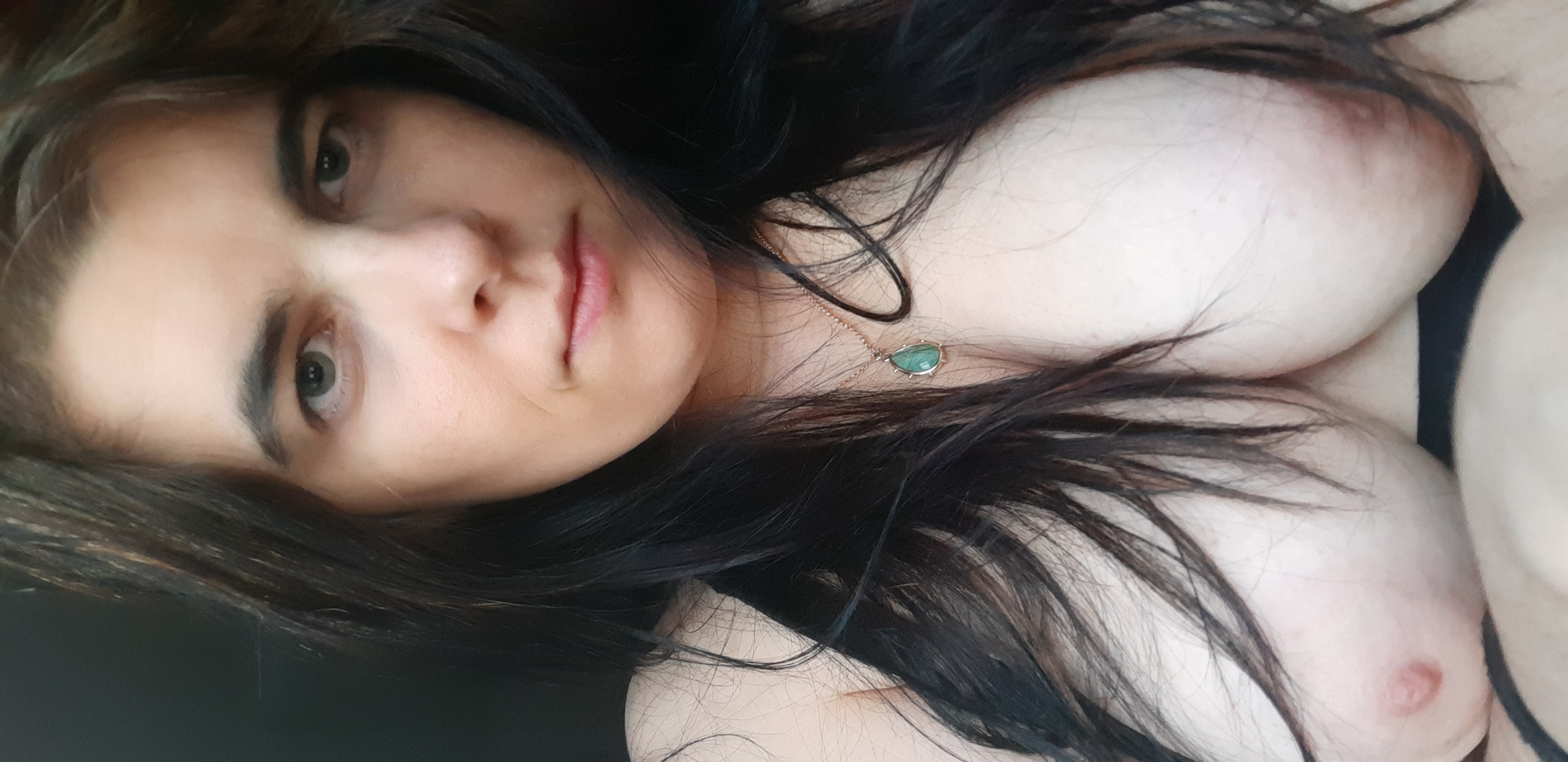 Amateur Milf lazing about in bed revealing her boobs.
