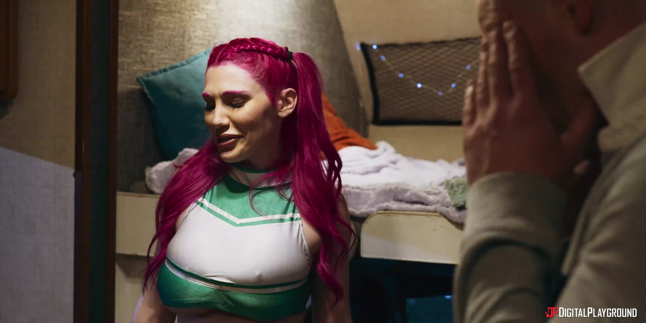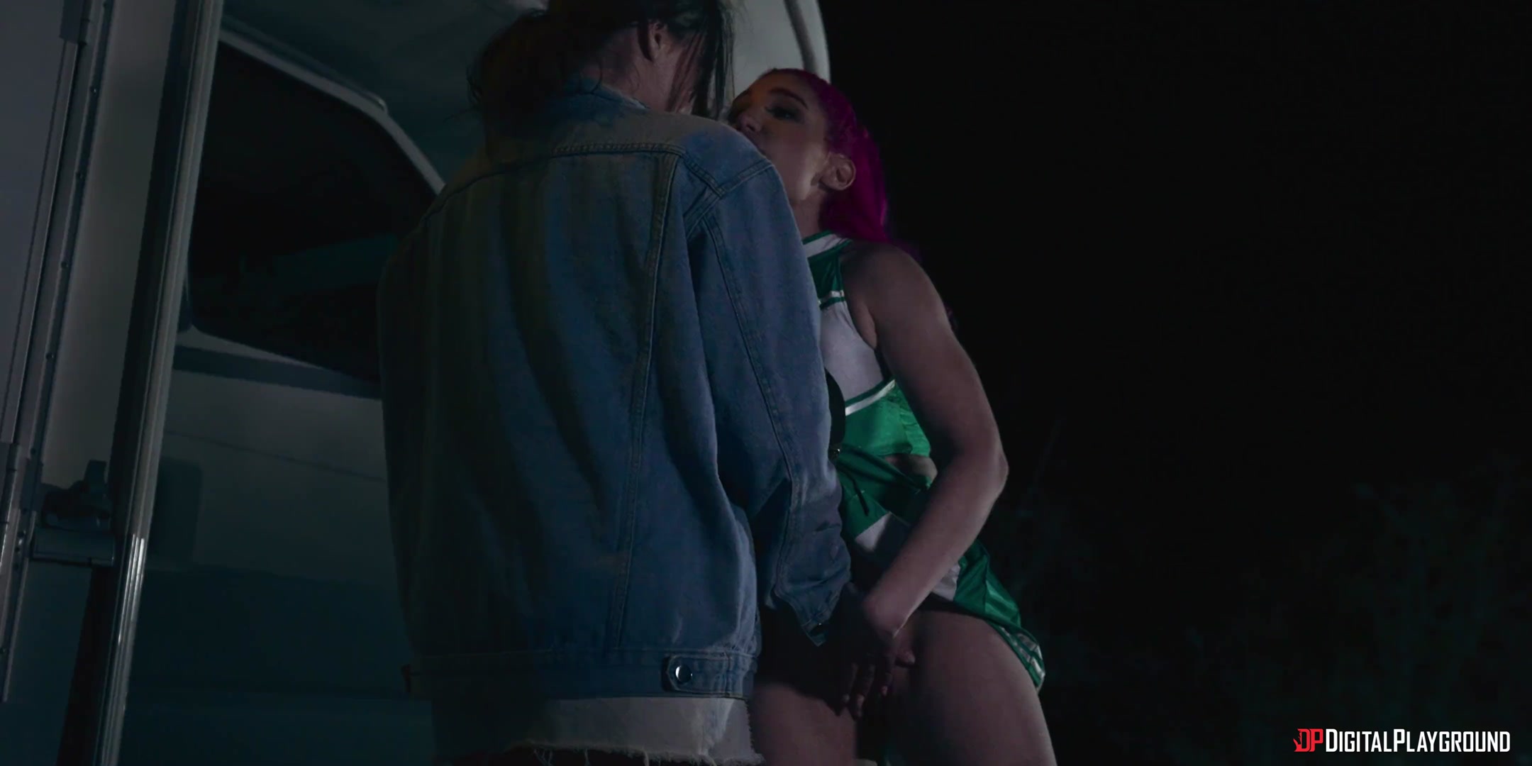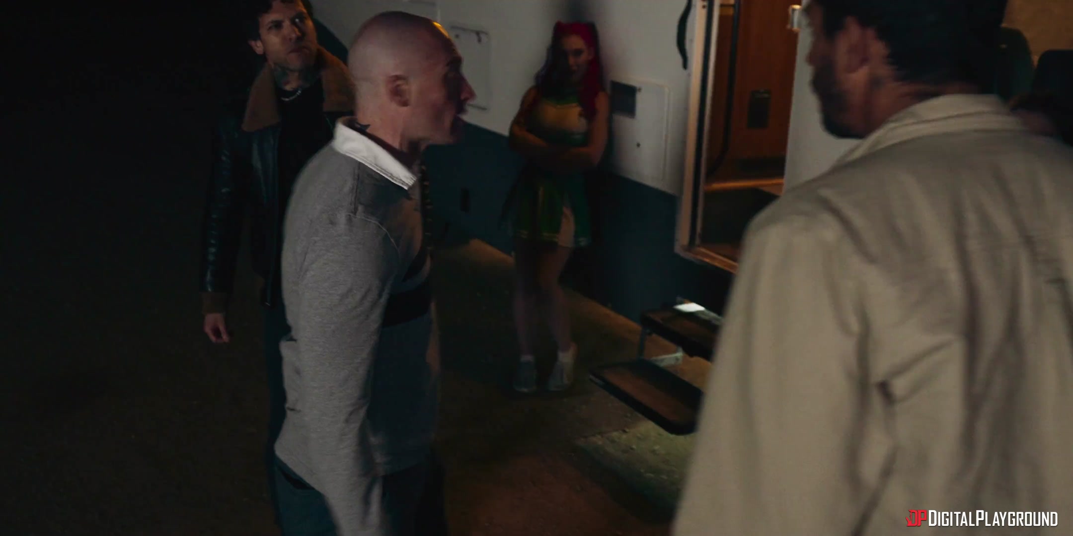 As night falls, the campsite is quiet and deserted, except for the reunion campfire, where inhibitions are starting to fall. Marcy (Lily Lou) decides to take things up a notch as she puts on her old cheerleading uniform and flashes the guys, while her husband Frank (Small Hands) hits on good girl Lisa (Aubrey Valentine), offering to take care of her if her husband isn't satisfying her. But it turns out Lisa's been cheating... with his wife! Lisa tries to end things, but Marcy convinces her to have one last fling. The babes sneak into the RV to hook up, and are shocked when Frank comes in! The cheating twosome turns to a threesome as Lily gets a taste of both swinging spouses. But when Lisa's husband sees them, things are going to change forever...