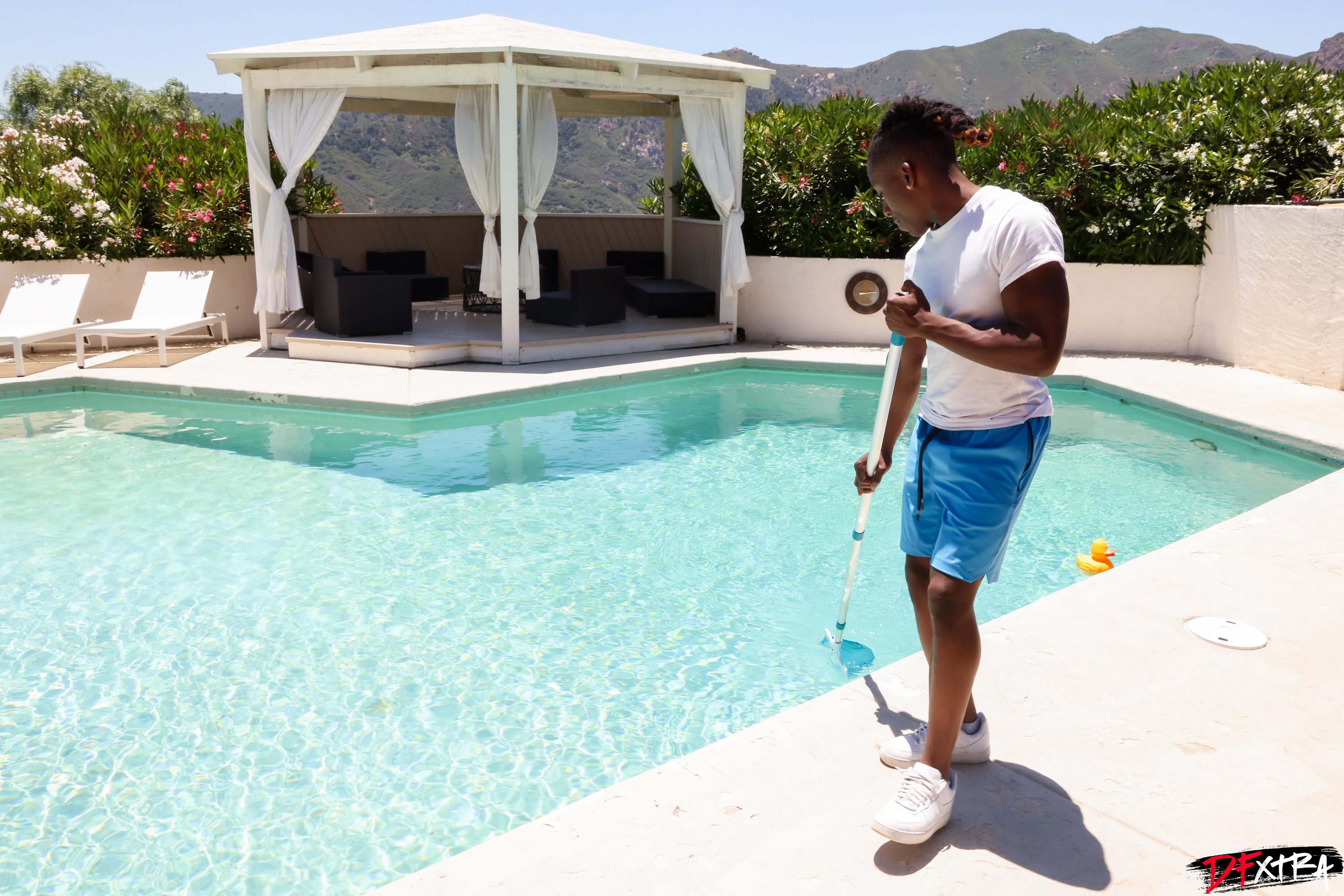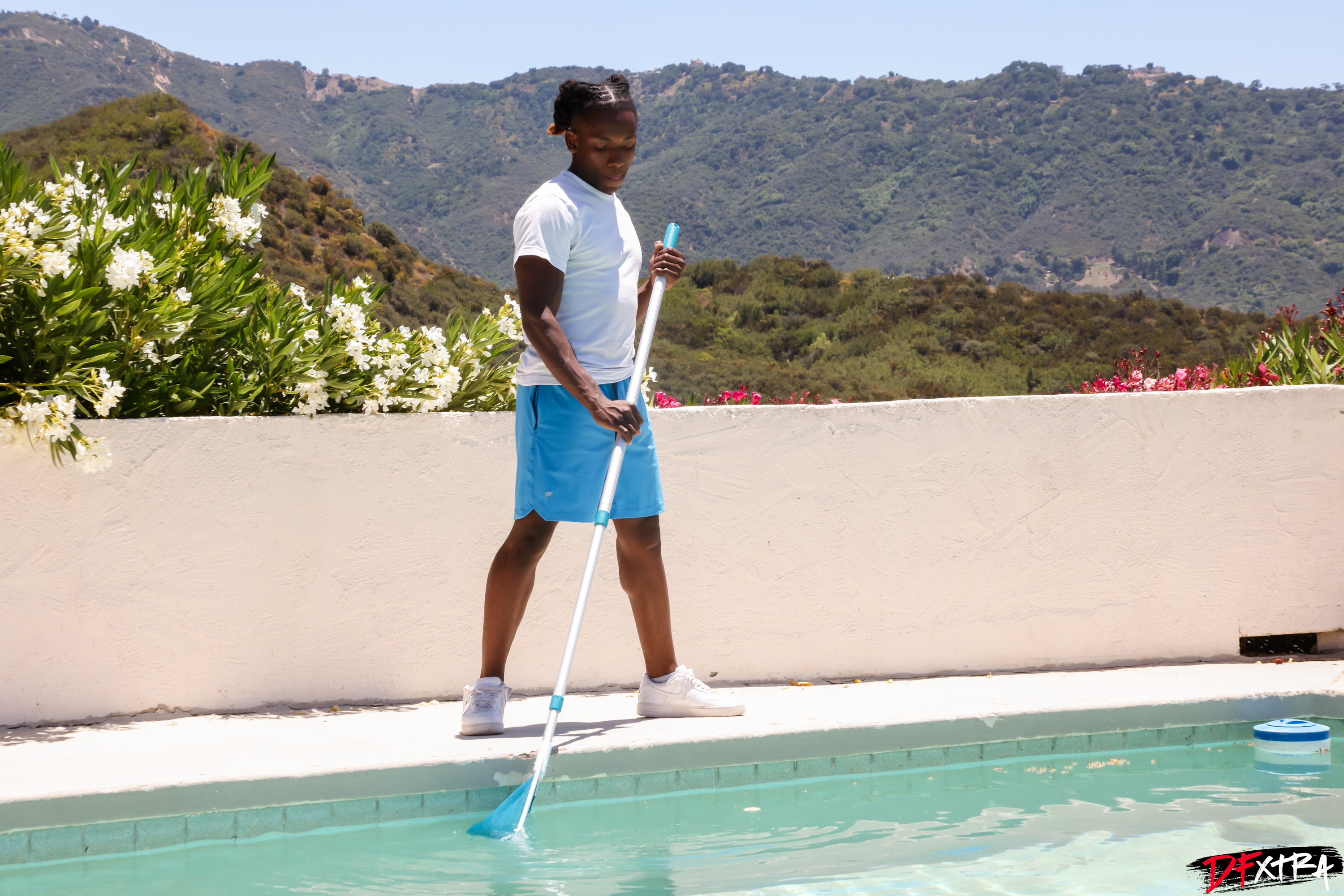 DFXHomeWreckers - Savanah Storm| Being a spoiled kept trophy wife definitely has its benefits. You can just lounge around all day or spend time shopping. Just doing whatever you want. Well what Savanah Storm likes to do when her husband is not around is to fuck whatever young man she can find. Today she has the new 18-year-old pool boy (Mighty Dee) squarely in her sights. Where did this sweet little chocolate treat come from, she could only wonder. Turns out he is helping his father (the owner of the company) out before he heads out to college. When the young man is 18, she knows it does not take a whole lot to get their loins up and ablaze, so she simply asks to see what size stick he is packing and next thing you know she has one nice 10-inch sweet ebony meat pole in her mouth, and she is slurping away. Being on a constant diet, Savanah always prefers cock in her mouth versus carbs. It’s a protein spouting snack and she would love to have it tucked up deep in her gut via that dripping hot snatch of hers. It’s a hot day indeed as Savanah heats it up outside the pool for all the neighbors to see and hear. Riding loud and hard, Savanah belts out one orgasm after another. The only thing that will slow this woman down is a hot steaming love blast of man chowder in her face.