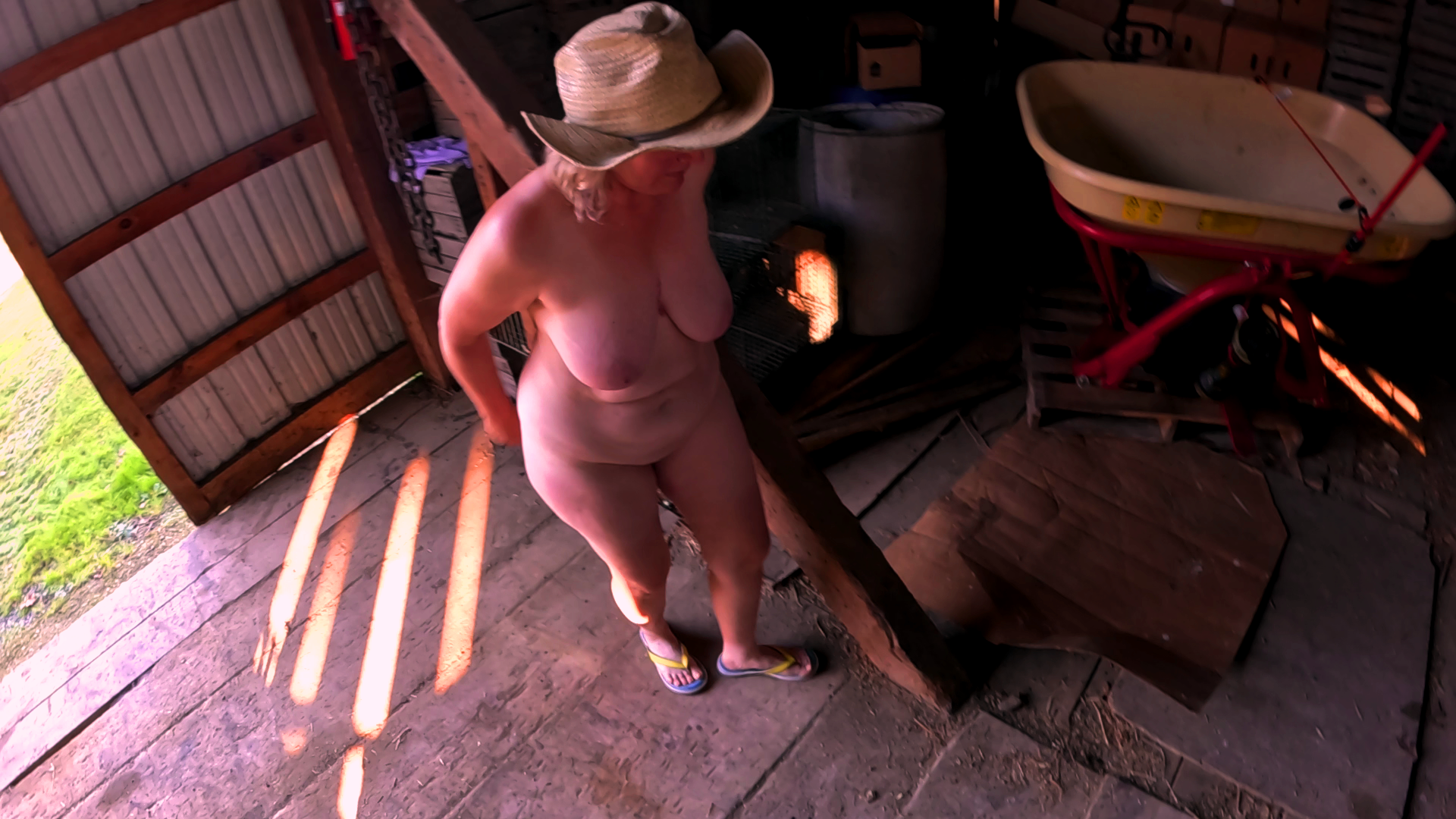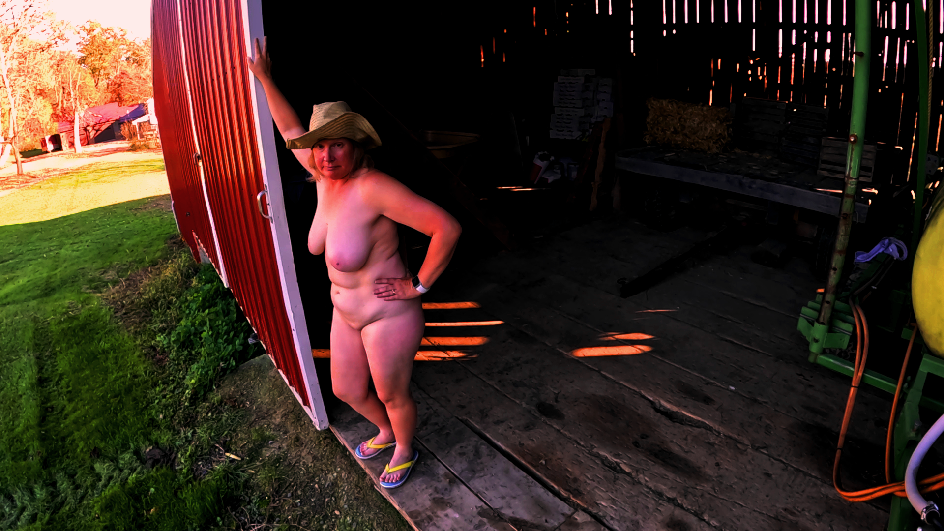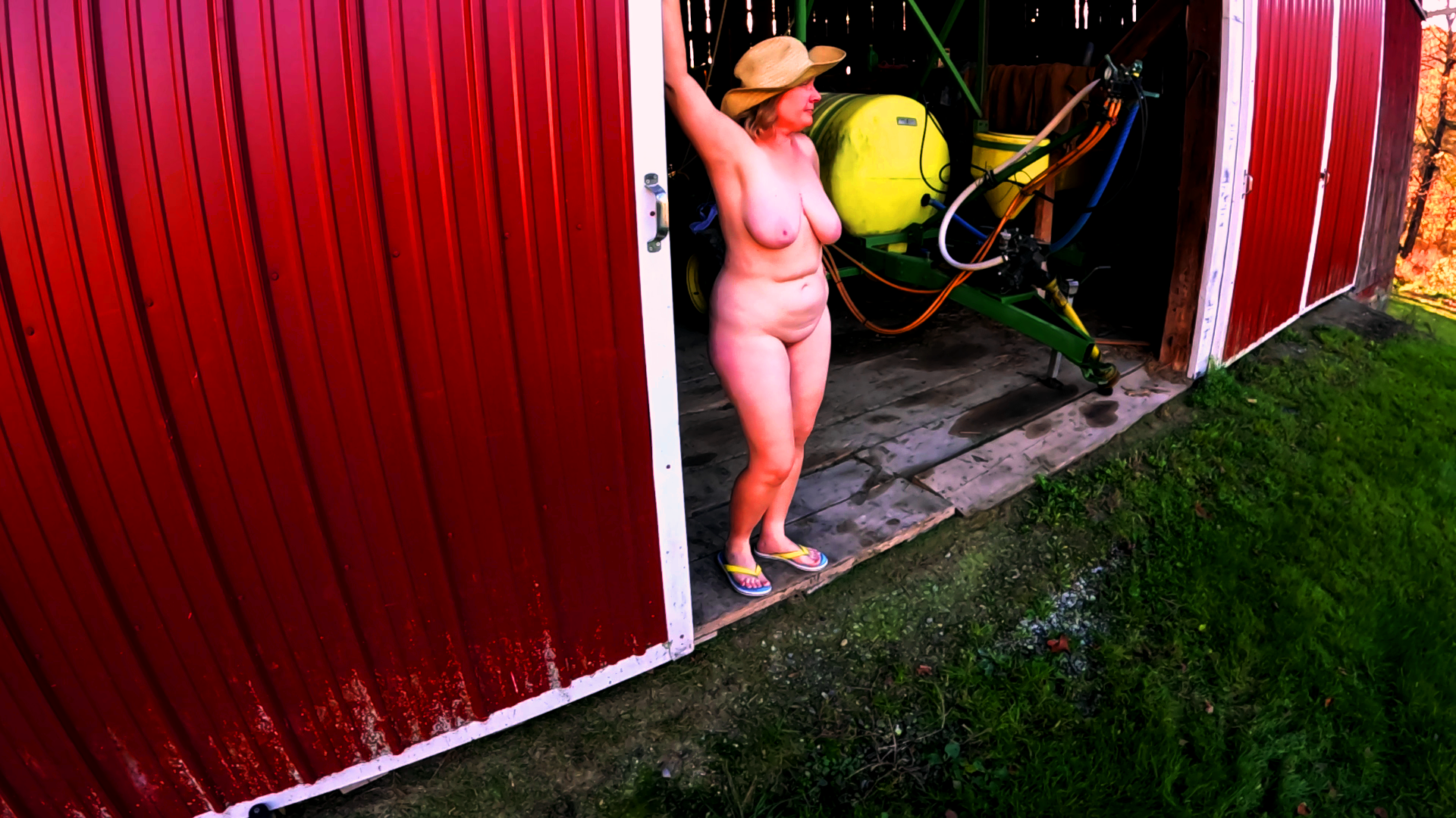 I love being naked outdoors and the barn is a perfect place to show off