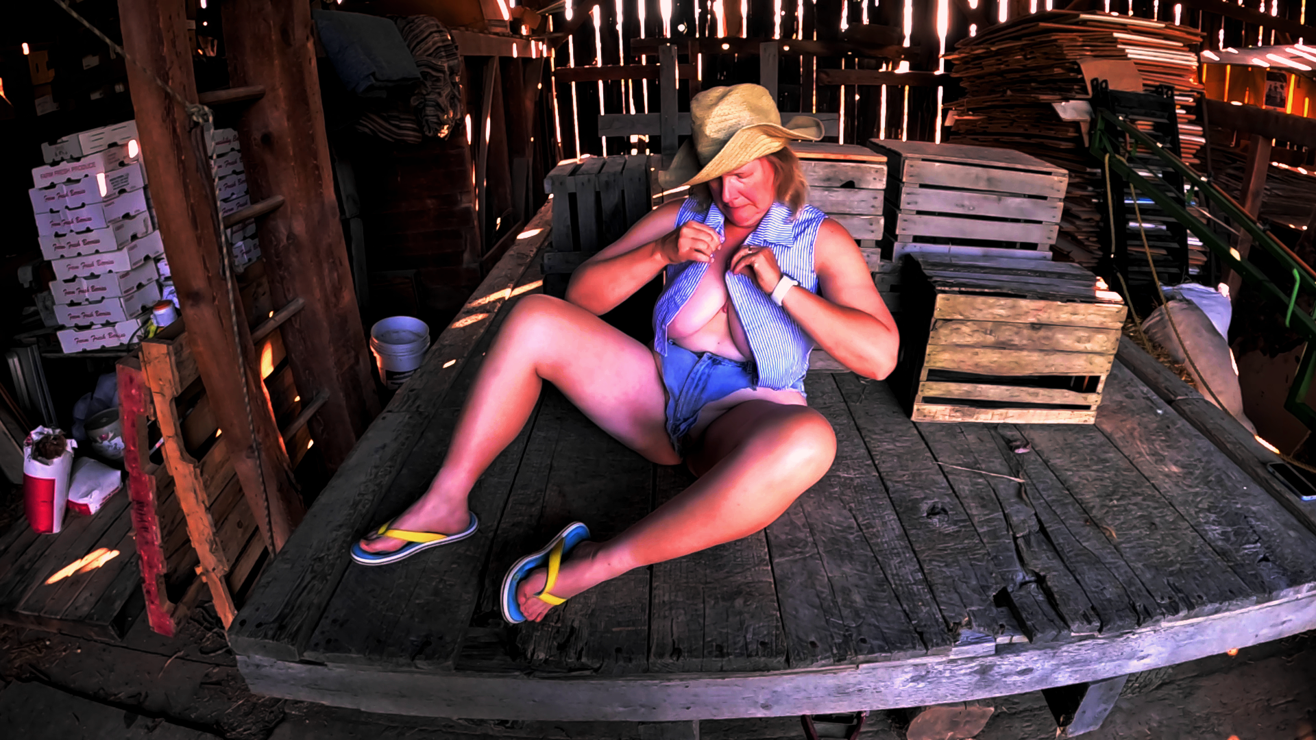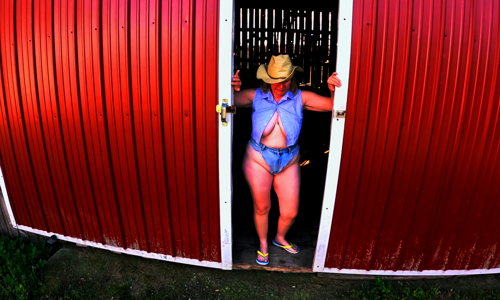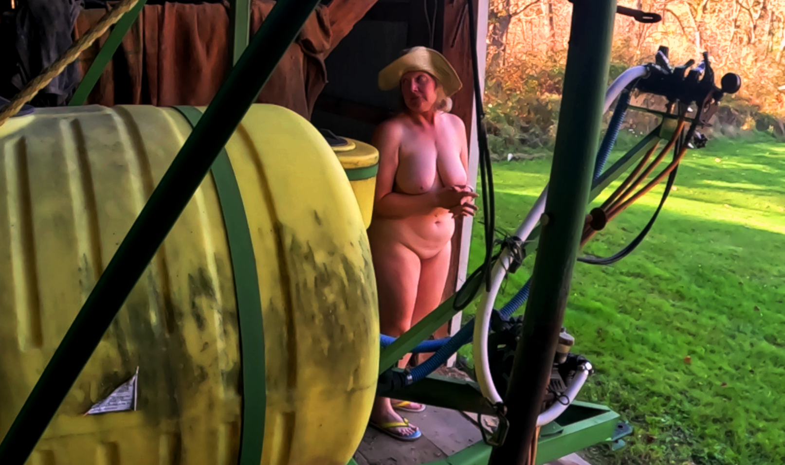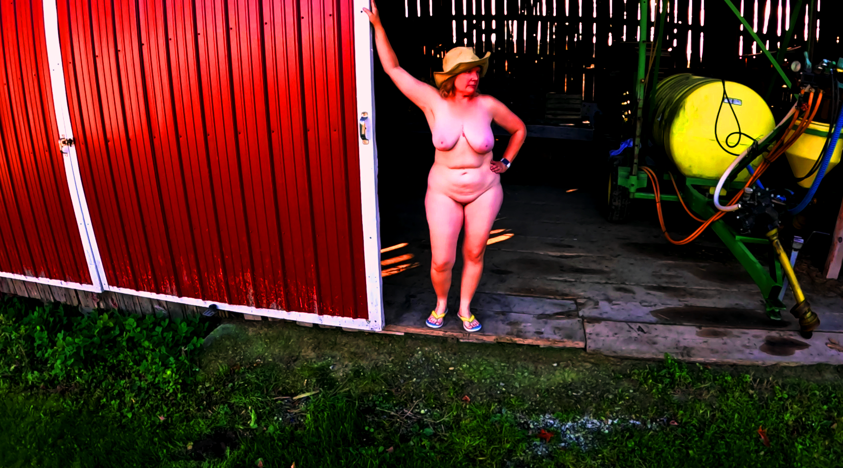 I love being naked outdoors and the barn is a perfect place to show off