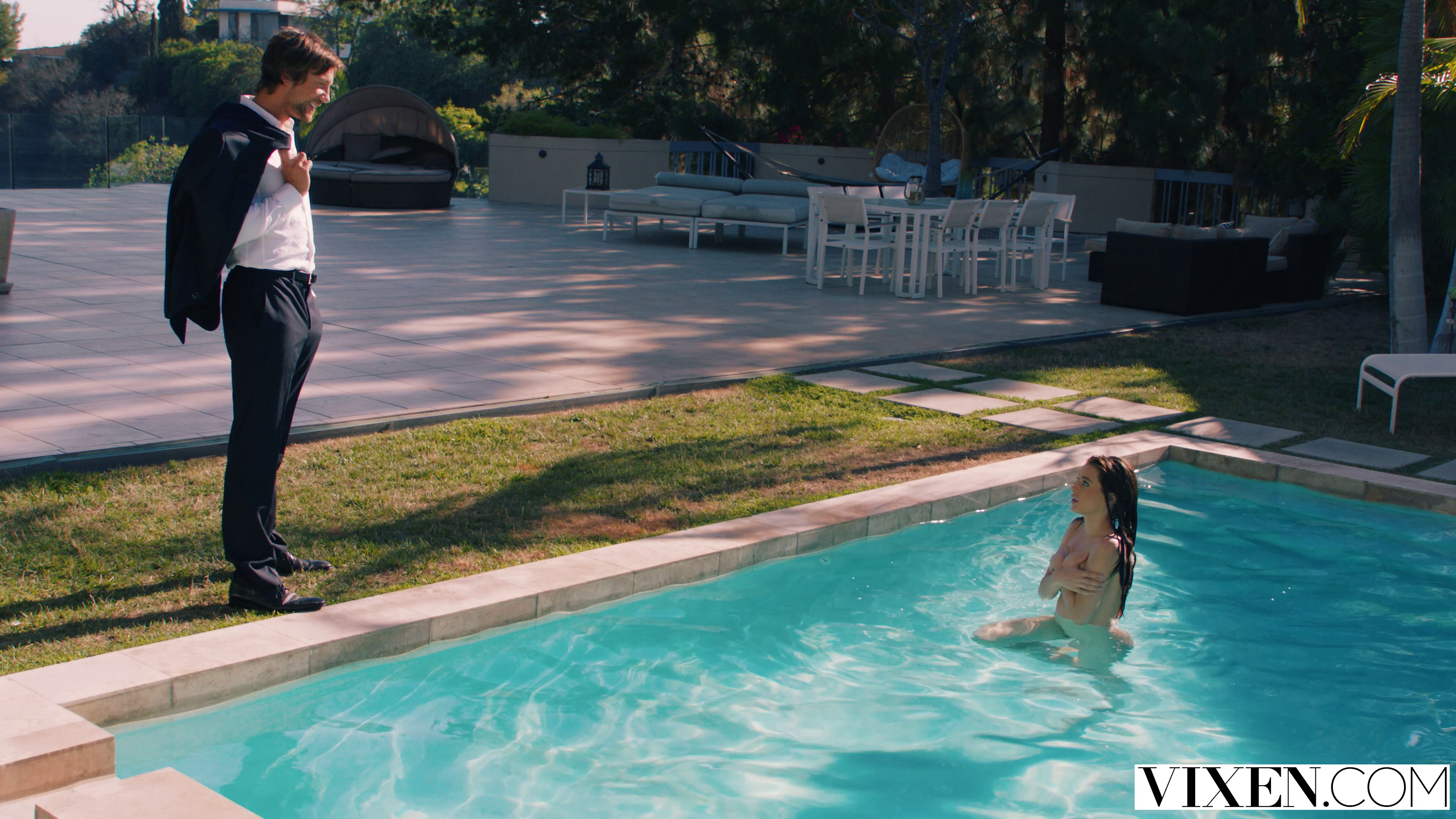 Lana had recently moved to LA from Ohio and got a job as a PA to a famous French actor. She finds him charming and has a really big crush on him. When he leaves for a meeting, she is left to clear up his office. It is a really hot day and she decides to take a dip in his pool to cool off. Knowing this is completely unprofessional, she is feeling adventurous and takes the risk. When he comes back unannounced and finds her swimming naked, she is so shocked, but when he joins her in the pool, she knows exactly where this is heading.