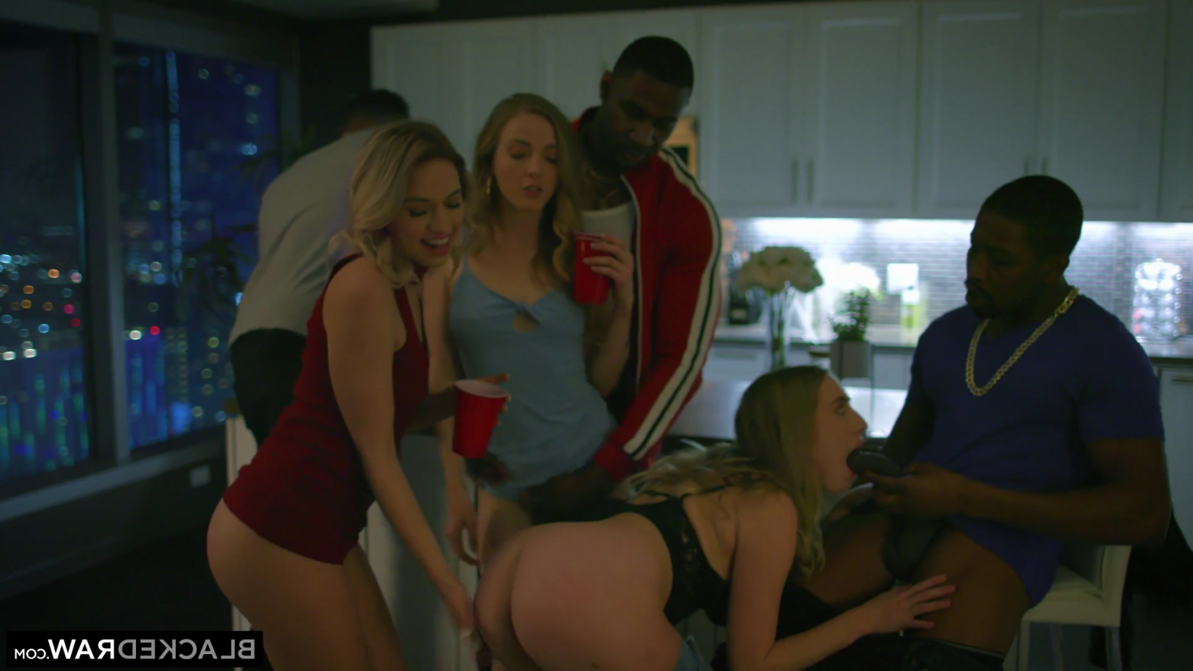 Interracial gangbang