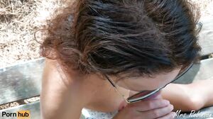 Mrs Robinson - She Licks Cum from her Big Tits after a Blowjob in Public