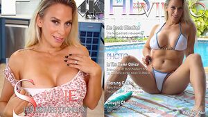 We meet beautiful busty blonde Sadie in the home office and wow she sure is annoyed at her guy for being such a workaholic...she gives him an earful about always being on the job, then offers a 'solution' to his stress, namely getting his hands on those big soft boobs of hers! She gets her beautiful pair out and also starts rubbing her pussy through the fabric of her panties. She starts to finger herself and we note the wet sounds from inside her hole as she masturbates, bringing herself to a nice orgasm...her first of the day. Heading to the following morning she's enjoying a little hot coffee and wants to get back into the sack with her man, teasing and tantalizing by showing off her titties and rubbing that pink pussy some more as she spreads in front of him...and she grabs one of her favorite vibrators too, holding it against her clit for some buzzing pleasure. The next little roleplay scene has Sadie getting changed into some new lingerie and her stepson caught a glimpse of her putting on the bra and panties through the bedroom door...but she doesn't exactly seem angry about him as an audience, in fact she starts playing with her boobs to turn him on and pulls those panties aside to play with her pussy and fuck herself with a toy while he watches! For the last scene we see her standing in the pool wearing her skimpy bikini, with her nipples straining against the thin fabric of her swimsuit...she's feeling mighty frisky and soon is out of the water and posing on a towel, getting that beautiful ass up in the air as she masturbates doggystyle until she enjoys one last climax on the day. It's a fun and exciting day for this horny housewife Sadie, get ready to join in on the fun here on FTV MILFs!