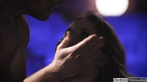 Busty teen virgin Eliza Eves is nervous when she meets an older guy in his dungeon.He rubs her pussy wet before he deepthroat facefucks the big tits blonde.The chubby babe gets her snatch eaten out before she is fucked doggystyle for the first time