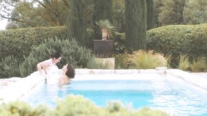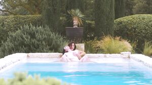 Wet toes in the water, Calita looks across the pool to the gorgeous Maria Riot. Smiling she rubs her wet legs against one another. An air of lustful tension ripples over the open water as both women touch and caress their damp skin studying each other intently.