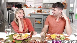 Kai Jaxon gets into an intimate encounter with his stepmom Armani Black upon finishing preparing for THanksgiving Dinner they get frisky and flirty with each other which leads their dinner turns into a hot steamy fuck sesh eating each other